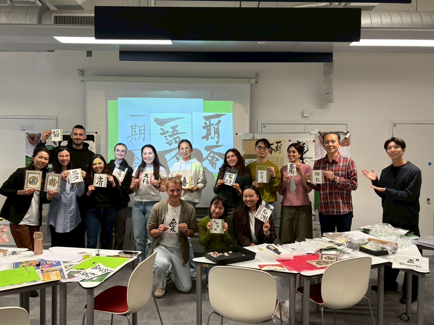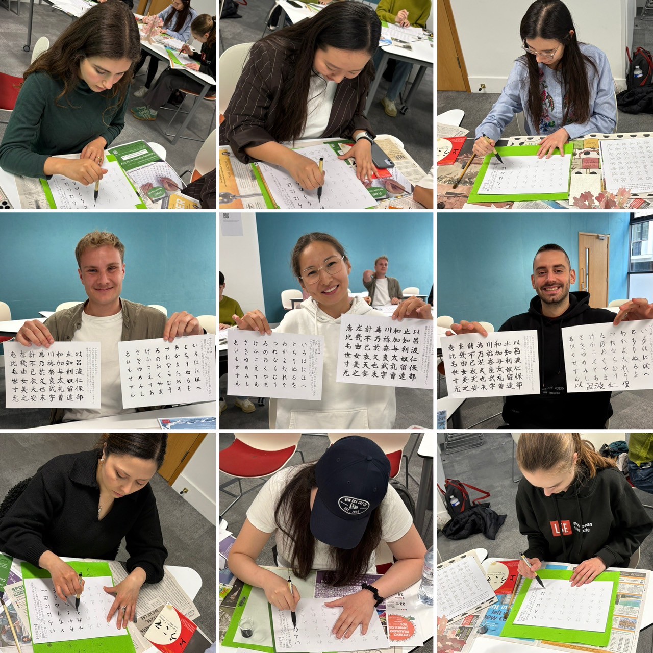 経済の中⼼シティに位置し、1895 年ロンドンで創設された社会科学分野の研究教育に特化した世界のスーパーエリートが集まる L S E ⼤学の図書館にて開催。先着 30 名参加チケット即⽇配布終了となる関心の高さ。今回のテーマ「和⾳」にまつわる 3つの和⽂化紹介。 フランス「漢字る⼀語⼀会」アニメ漫画⾳楽演奏をビデオにて鑑賞。(協⼒ピアチャミュージックメソッド)和装、浴⾐紹介。(協⼒(⼀財)全⽇本和装コンサルタント協会) 書道の歴史、漢字の成り⽴ちを学び、禅の「⼀期⼀会」にちなんで、それぞれの「漢字る ⼀語⼀会」の発表。和紙ハガキ配布。(協力(株)ならや本舗)当⽇の様⼦は LSE ⼤学LIFE広報より SNSにて動 画 配信。書道ガイドブック「ようこそ」英語版配布。「街なか書道体験」(協⼒⽇本書道⽂化協会)を通して、⽇本の書道を ユネスコ無形⽂化遺産登録推進へ向けて ロンドン⽇本⽂化センター所⻑様はじめ、多くの皆さんに応援していただきました。